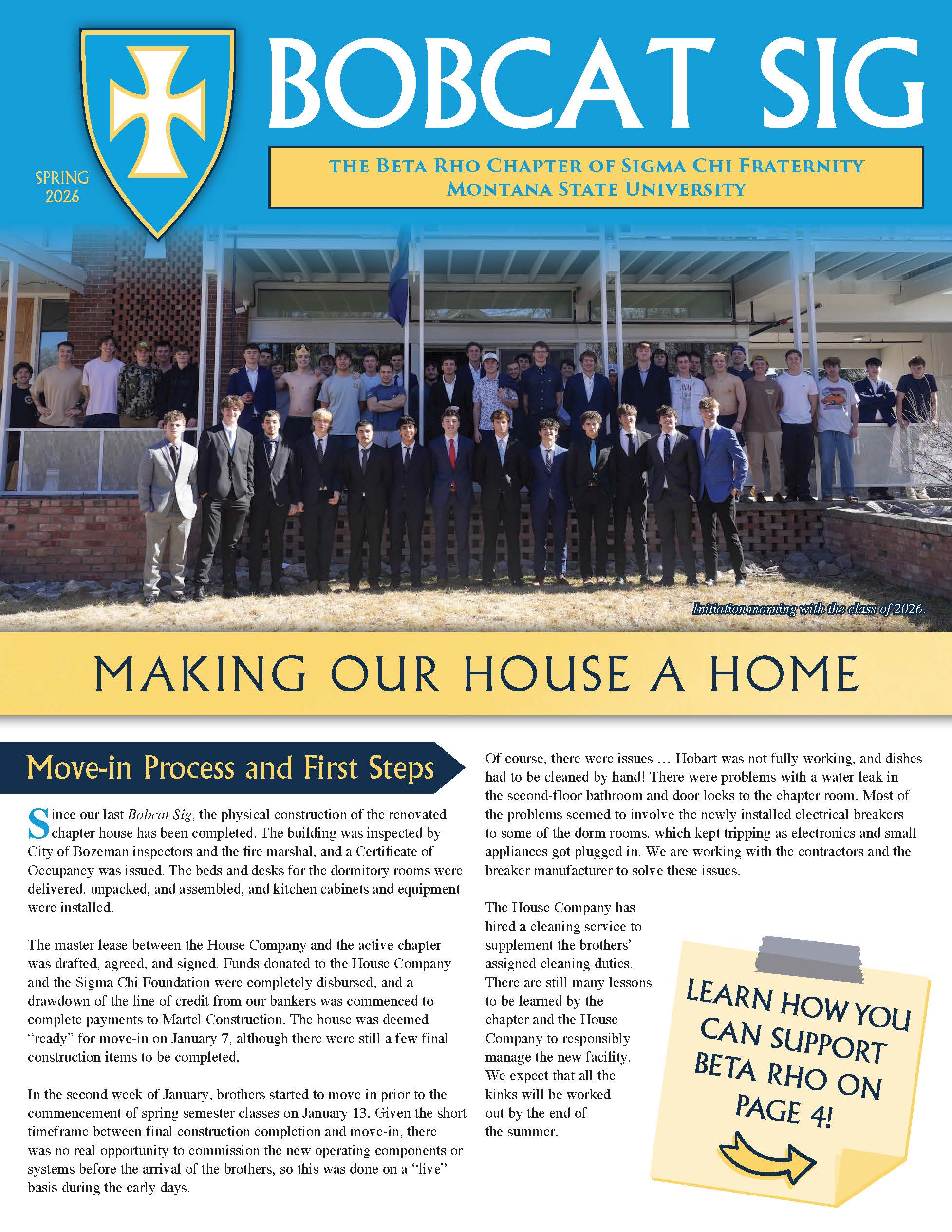 Welcome to the official website for the Beta Rho Chapter of Sigma Chi at Montana State University. Whether you are a potential new member, undergraduate, or alumnus, we hope you find what you need here. As Beta Rho men, we know that membership in this brotherhood extends past our days in the college house. We hope this website will help you stay connected with the chapter, informed about news and events, and stay in touch with all of your Sigma Chi brothers.